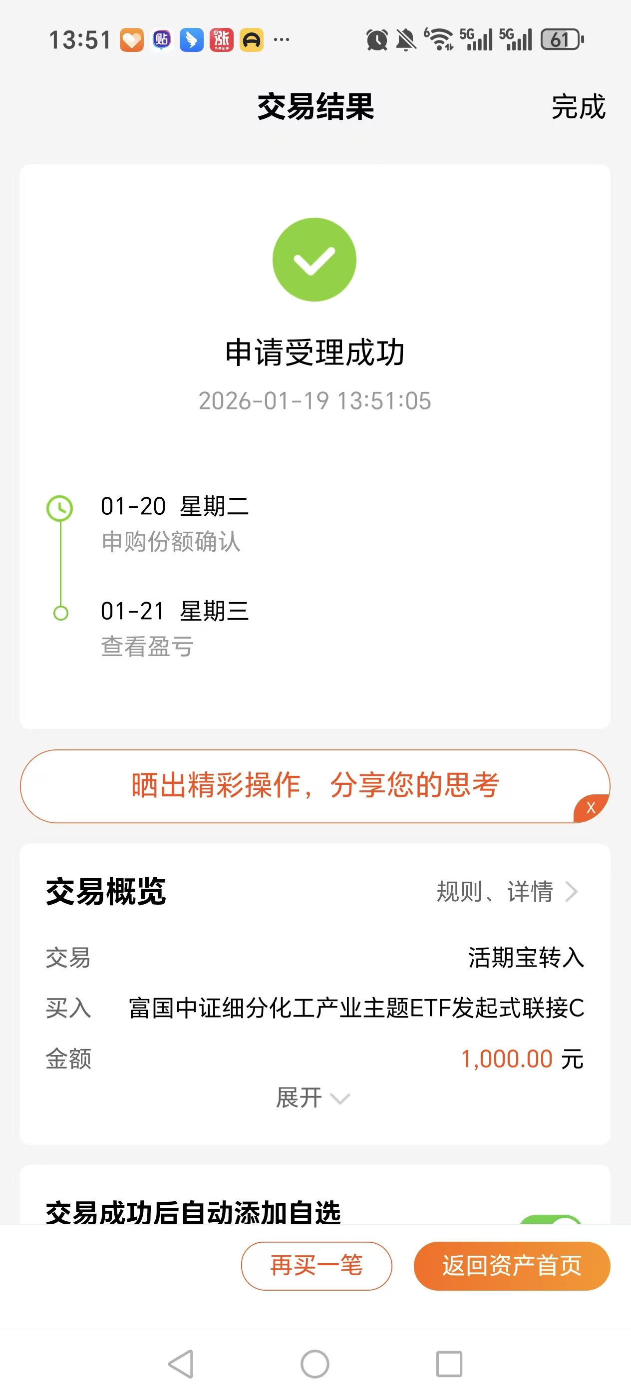 那么近期也是计划通过$富国中证细分化工产业主题ETF发起式联接C$ 来对这个方向做布局,该基金也是聚焦了化工全产业链,并且跟踪误差小,费率较低。所以雨哥来对其做一个买入操作。