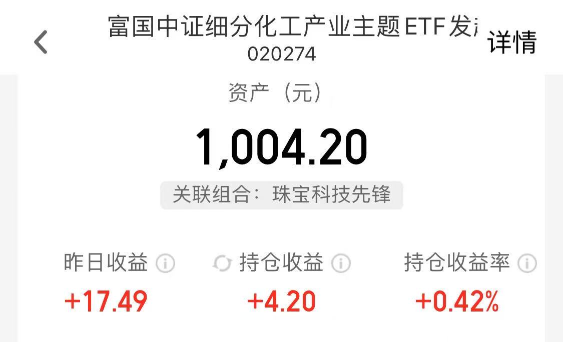 其实前几天我已经小笔入了化工指数产品,最近看行情情况再考虑怎么布局。$富国中证细分化工产业主题ETF发起式联接C(OTCFUND|020274)$