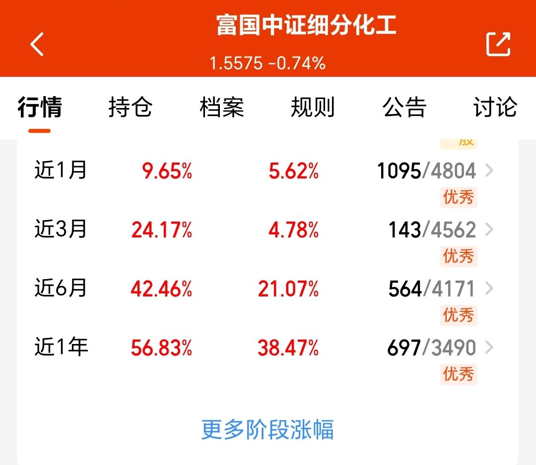 市场近期调整,涨跌同源。我布局的化工板块连涨6周、涨幅超25%,从底部回升近1年涨幅超58%,赚钱效应还可以。