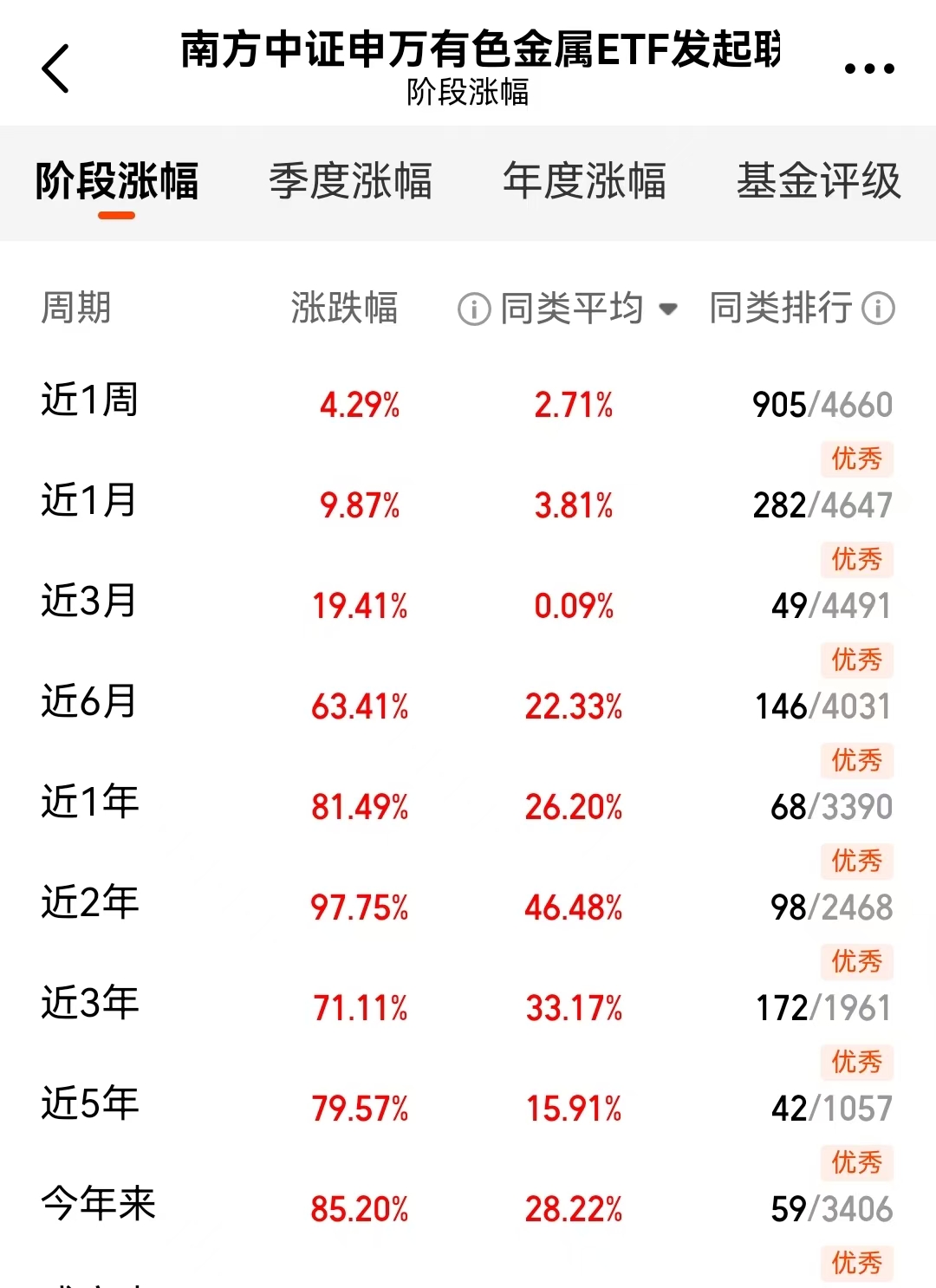 趁着市场情绪好,我又加了点$南方中证申万有色金属ETF发起联接A$(004432)。有色这块今年真的挺猛的,不知不觉都涨了80%多了。我看近六个月就有63%的涨幅,表现很扎实。现在很多行业都在恢复,对基础材料的需求肯定少不了。这个基金布局比较广,能跟着整个板块走,我觉得比单押某个方向要稳当点。行情起来了,跟着喝点汤也不错。#商业航天赛道爆火:2026年行业或迎质变#