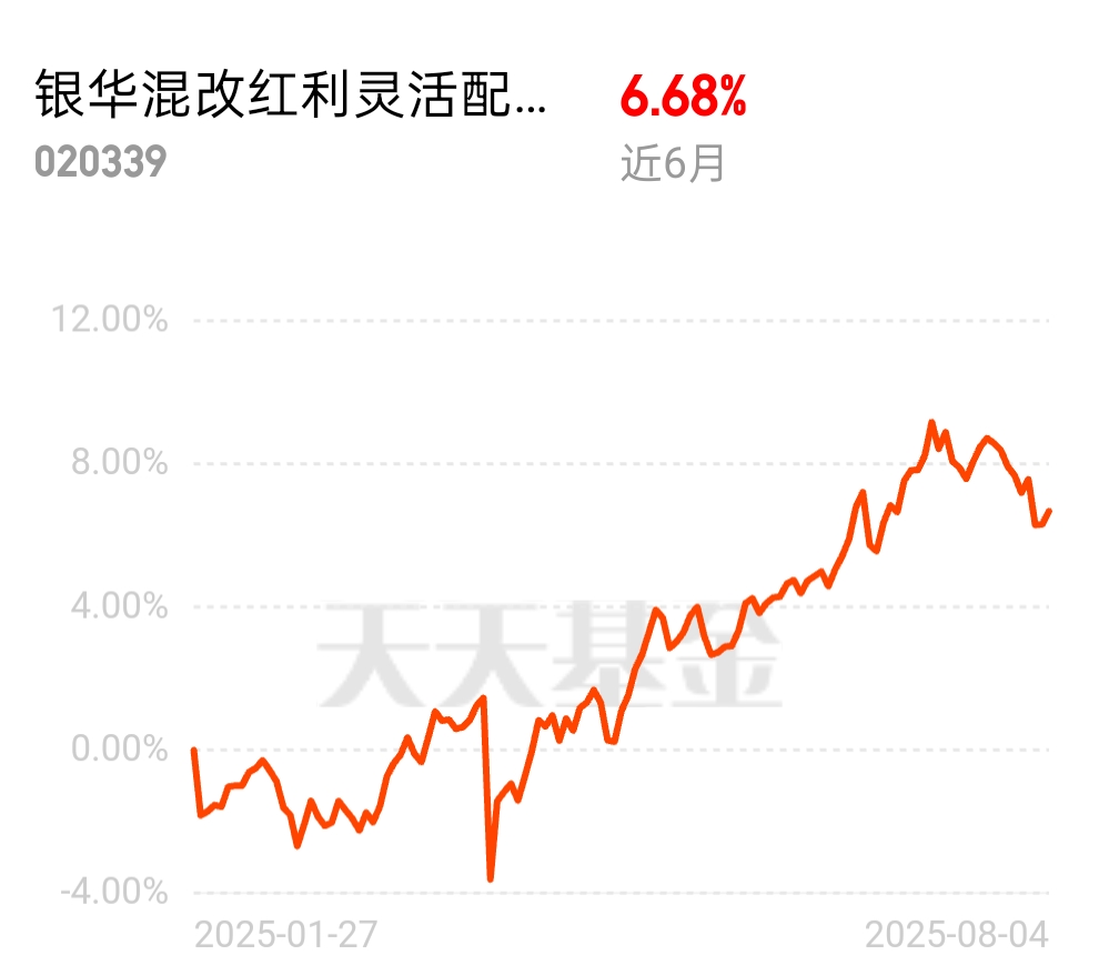 当前,混改红利板块正处于"政策红利释放-盈利修复确认-估值体系重构"的关键阶段。$银华混改红利灵活配置混合发起式C$ 凭借其精准的赛道布局、对高股息资产的深度挖掘,为投资者提供了穿越市场周期的优质工具。在政策与市场的双重驱动下,该基金有望在下半年成为资产配置组合中的"压舱石"。