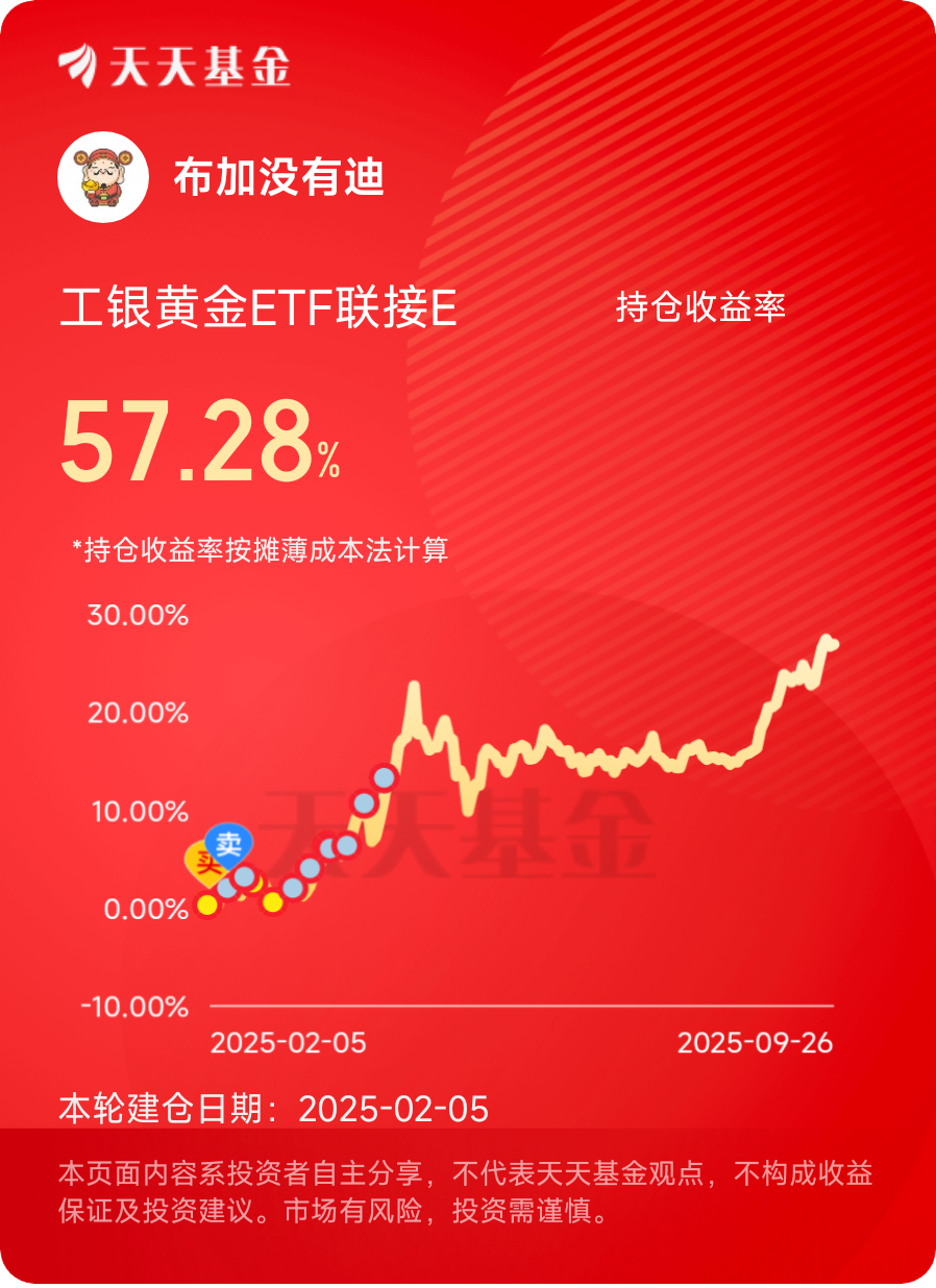 未来,随着全球经济格局的变化与货币政策的调整,黄金的投资价值可能进一步凸显。投资者应保持理性,结合自身情况合理配置黄金资产,借助工银黄金ETF联接E(020341)等低成本工具,在不确定性的市场中寻求稳健的投资回报。@工银瑞信基金 #晒收益#