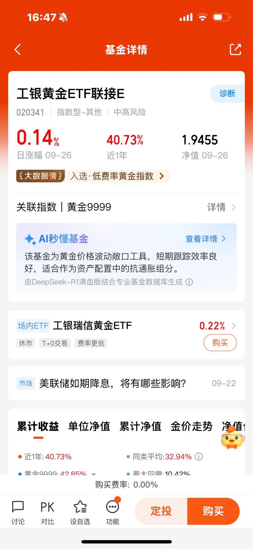 2. 投资黄金基金(如工银黄金ETF联接E)是否关注费率?