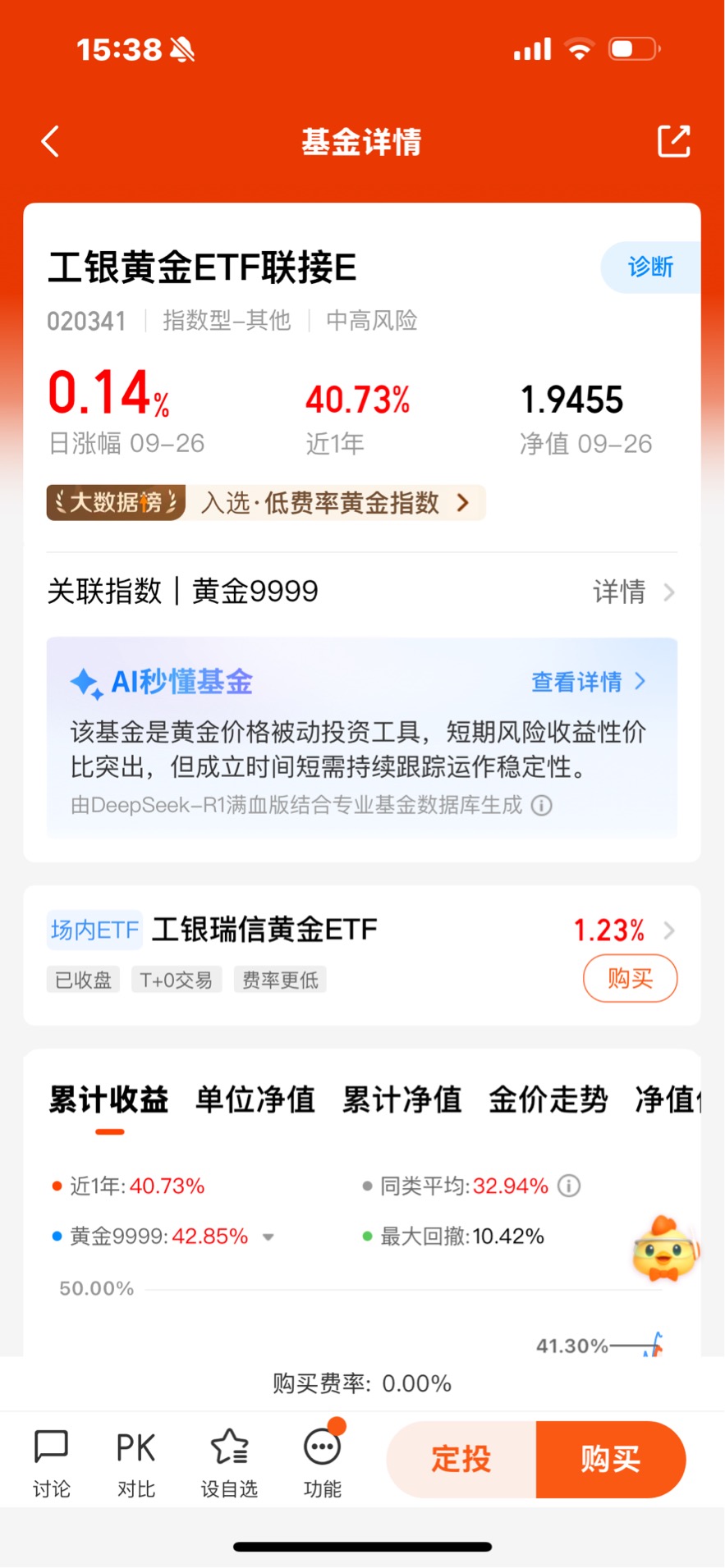 #低费工银黄金E#打卡第二天,$工银黄金ETF联接E$