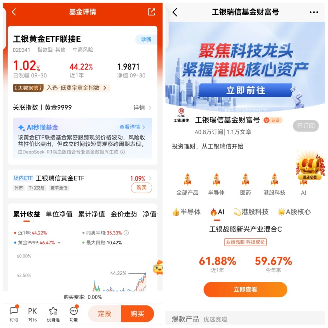留言第2天,工银黄金ETF联接E近期表现较为亮眼。截至2025年9月30日,该基