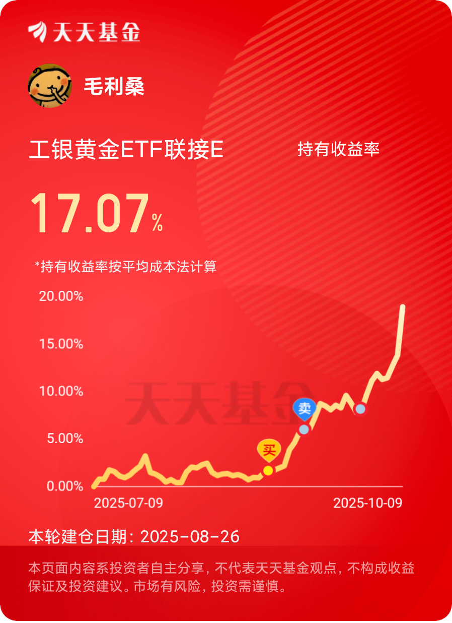 对于我们普通投资者来说,我一直觉得定投策略是参与黄金市场的稳健方式。通过定期定额投资,可以平滑市场波动,避免一次性追高的风险。今天我也在文章里说了,【工银黄金ETF联接E】(020341) 凭借其低费率、高流动性和紧密跟踪金价的特点,为我们提供了便捷的黄金投资工具。