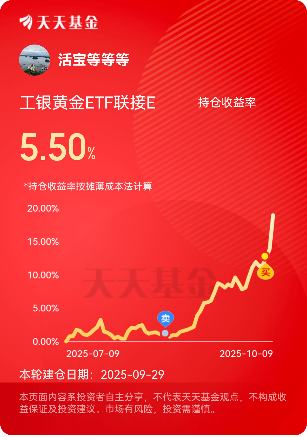 近期全球经济局势多变,黄金作为避险资产的价值愈发凸显。工银黄金ETF联接E费率低,能让投资者更高效地布局黄金投资。我在活动发布前就持有它,看着它在市场波动中展现出的稳定表现,很是安心。黄金具有抵御通胀、对冲风险的特性,在当前复杂的市场环境下,配置工银黄金ETF联接E是不错的选择。它的运作透明,跟踪黄金价格紧密,让我能便捷地参与黄金投资,分享黄金资产的收益。长期来看,黄金的保值增值能力值得信赖,工银黄金ETF联接E的低费率优势也能为投资收益加分,我会继续坚定持有,看好它的长期表现!@工银瑞信基金