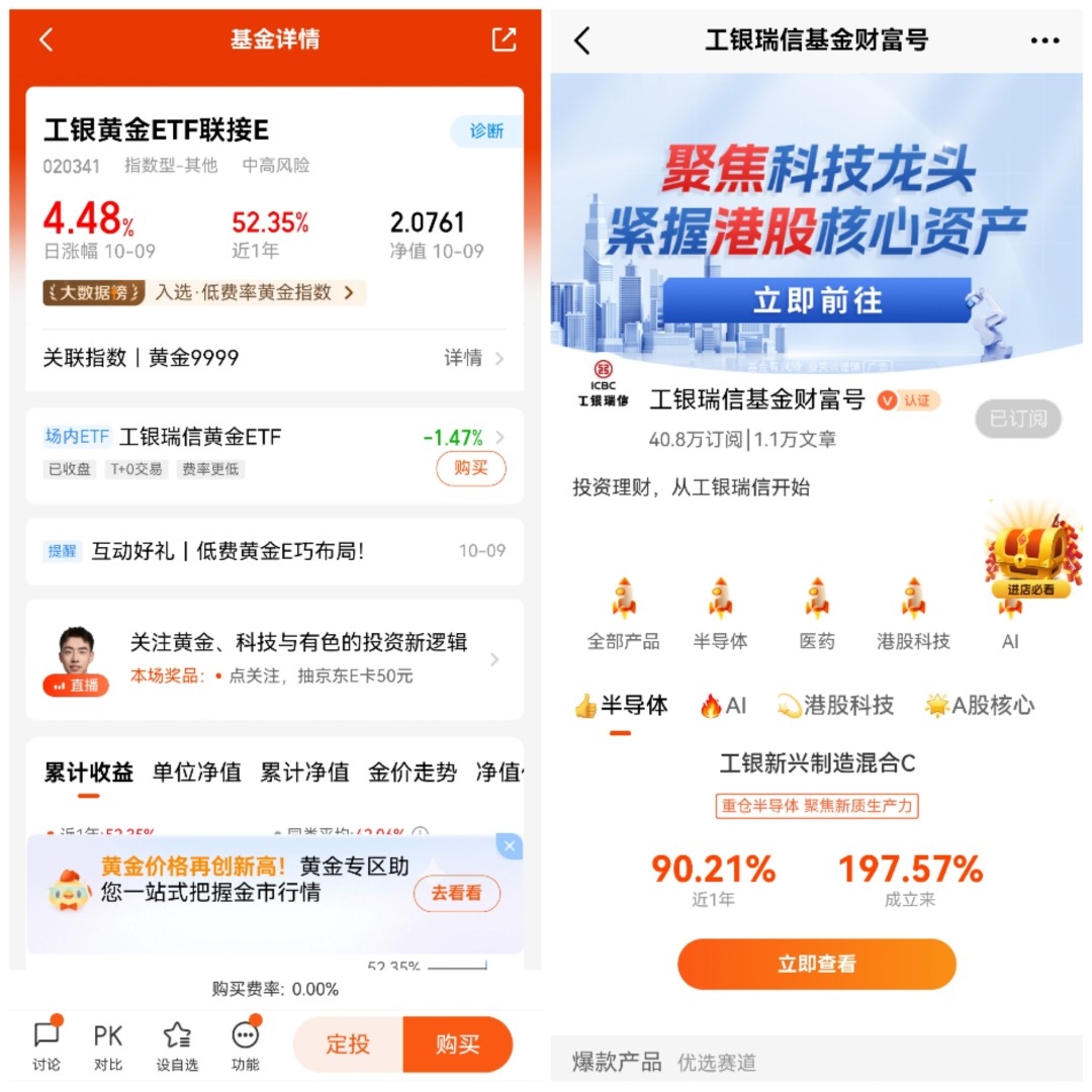 留言第5天$工银黄金ETF联接E$2025年10月10日,黄金ETF表现不佳,多