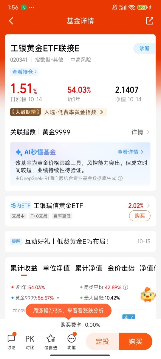 $工银黄金ETF联接E$ #晒收益# #10月你看好哪些投资赛道?#