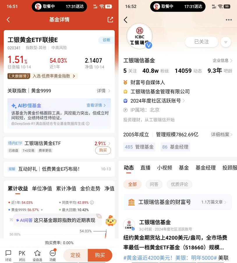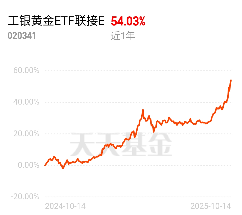 对普通投资者而言,$工银黄金ETF联接E$(基金代码:020341)是“借基淘金”的优质工具。在跟踪精度上,它紧密对接上海黄金交易所9999黄金现货价格,误差控制在同类产品领先水平,能精准复制金价波动,避免因跟踪偏离导致的收益损耗;在参与门槛上,10元起购的设置打破了实物黄金投资的高门槛限制,让小额资金也能灵活布局;在费率成本上,其优势尤为突出——不仅0申购费、持有满7天免赎回费,运作费率更是降至同类最低档,管理费仅0.15%/年、托管费低至0.05%/年 ,这意味着相比部分管理费0.5%/年、托管费0.1%/年的同类产品,长期持有能显著节省成本。以10万元本金持有一年为例,仅管理费和托管费就能节省约400元,而黄金价格波动较小时,费率差异对实际收益的影响更为明显。