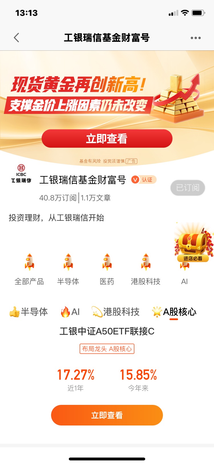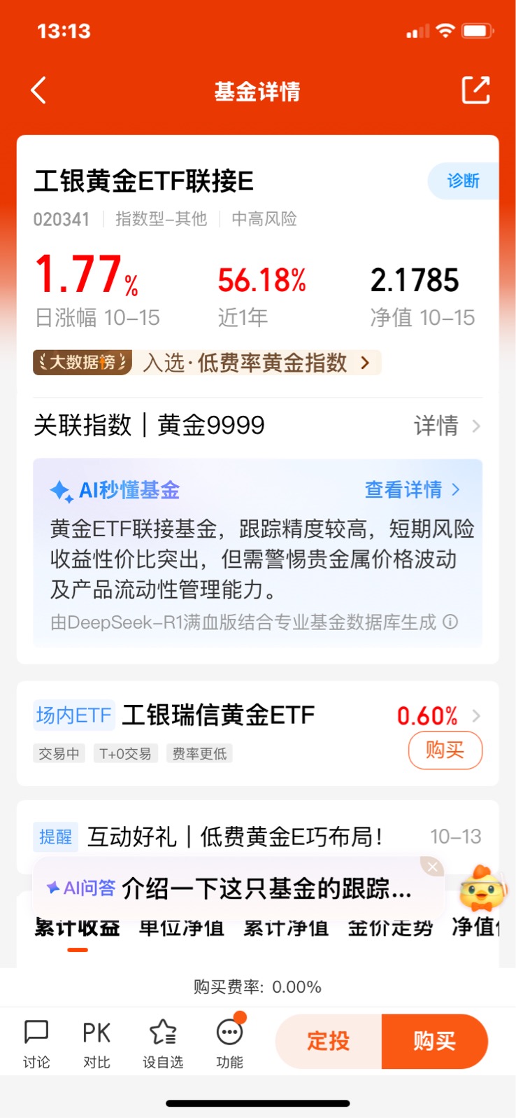 在众多黄金ETF中,我近期特别关注$工银黄金ETF联接E(OTCFUND|020341)$ 。经过深入研究,发现这只产品有几个突出的亮点: