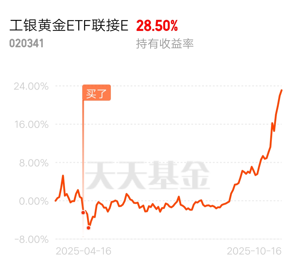 从费用角度看,这款基金的优势太明显了。申购费全免,持有7天以上赎回费也免,对于想灵活操作的投资者来说,能节省不少成本。管理费0.15%/年、托管费0.05%/年,长期持有下来,低成本带来的收益差异会很显著。我已经做好了长期布局的准备。$工银黄金ETF联接E$