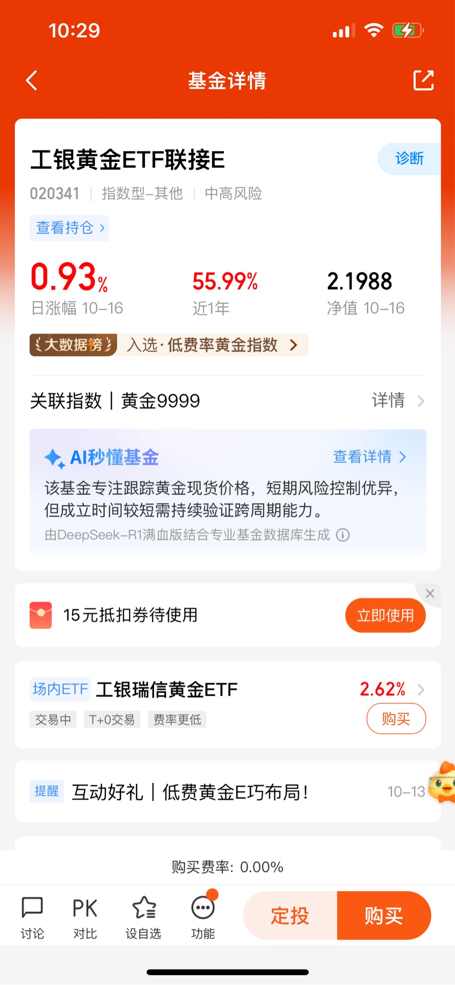所以,看懂了这三点,你就明白我为什么对黄金这么有信心了。至于我的布局,很简单,就是通过工银黄金ETF联接E基金来长期持有。直接买金条金饰太麻烦,还要考虑存储和手续费;自己去炒黄金期货风险又太高。而黄金ETF联接基金,就像一个专业的管家,帮我轻松追踪金价走势,门槛还低,操作也方便。