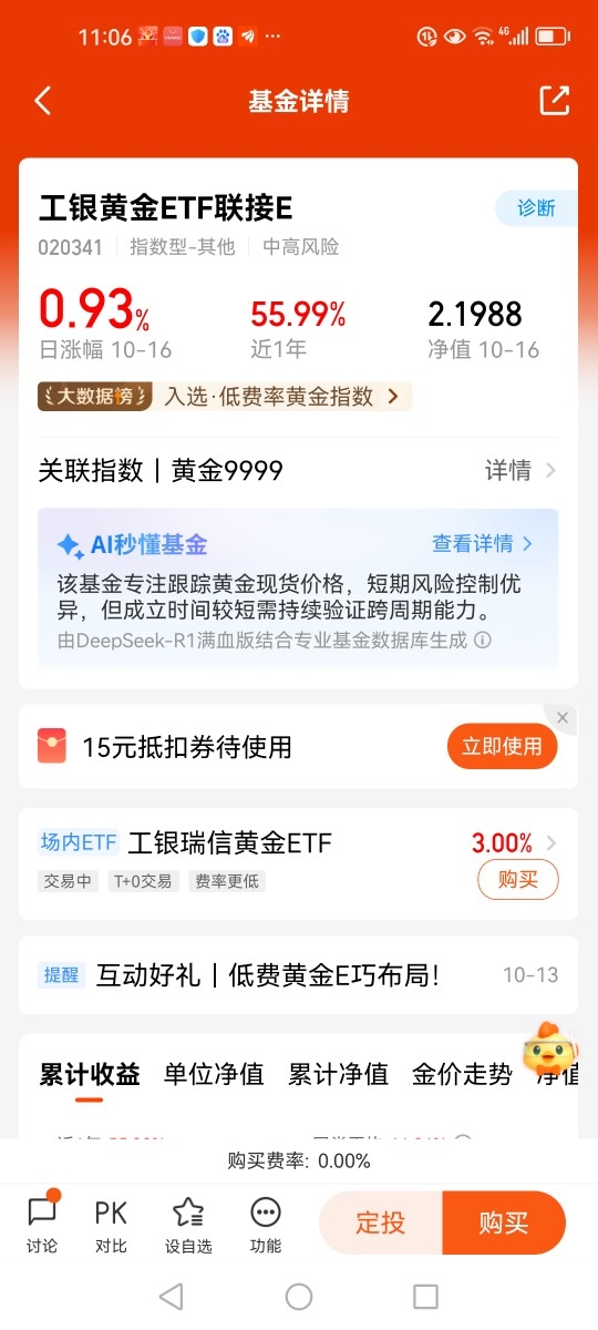 $工银黄金ETF联接A(020341)$紧密跟踪上海金集中定价合约,以人民币计价,规避了汇率的波动风险。上海金的定价由国内大型金融机构和黄金实业龙头参与,比较公开透明。该基金今年来收益率55.36%,位于同类产品业绩的前50%,投资者可借道该基金来聚焦黄金资产的投资价值。@工银瑞信基金