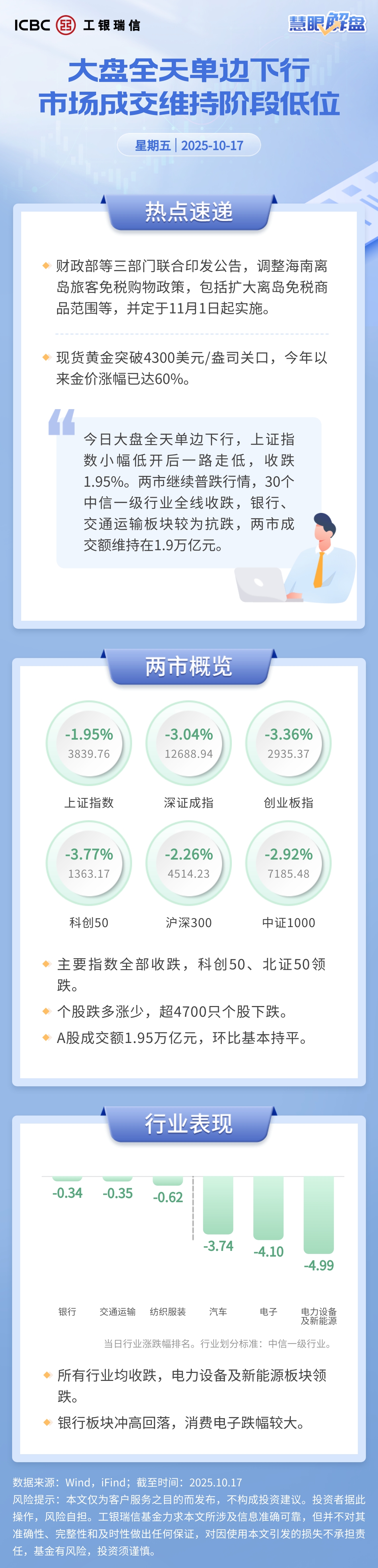 【慧眼解盘】大盘全天单边下行 市场成交维持阶段低位