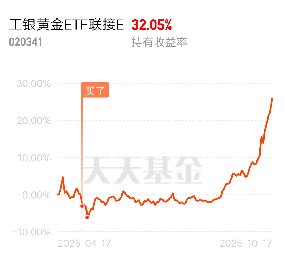 工银黄金ETF联接E的灵活性也很符合我的需求。如后续市场出现更好的机会,我可以在持有7天后随时赎回,且不用支付赎回费,资金流动性有保障。而且操作很方便,在天天基金APP上就能轻松买卖,还能实时查看基金净值和黄金价格走势。我已经跟身边几个想投资黄金的朋友推荐了这款基金。$工银黄金ETF联接E$