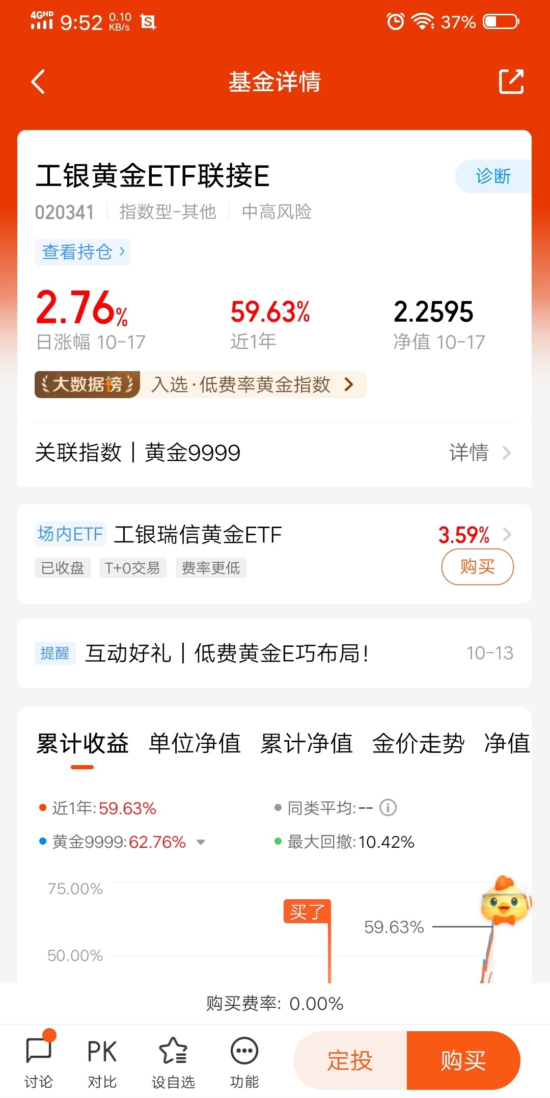 #10月你看好哪些投资赛道?# 深入分析了$工银黄金ETF联接E$ 的同类产品对比,发现在众多黄金ETF联接基金中,竞争力确实很突出,这也让我对黄金投资赛道的布局更有底气。