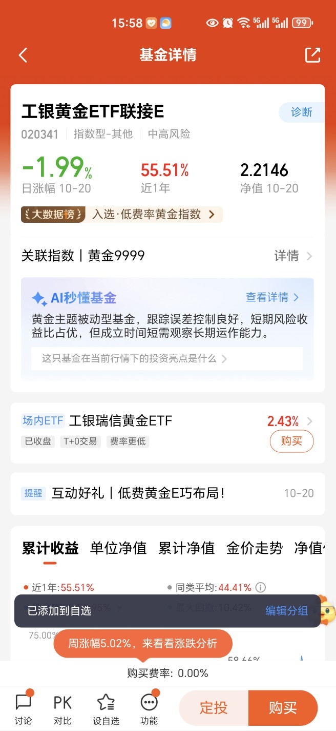 #低费工银黄金E#黄金具有较高的投资价值和配置价值。