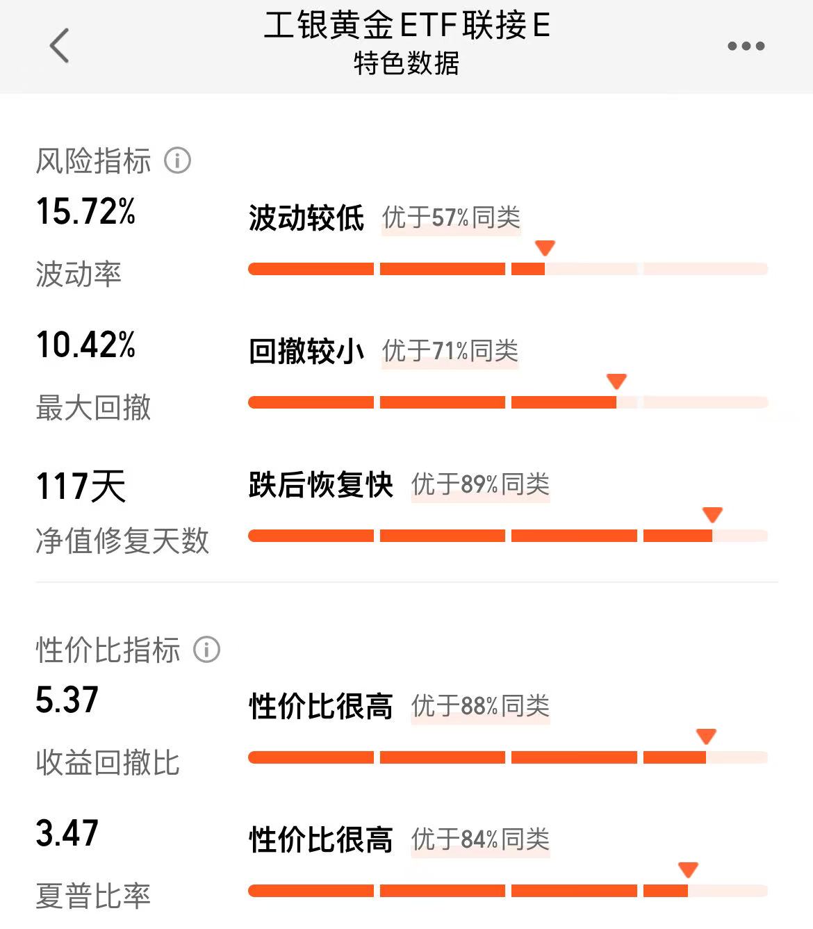 工银黄金ETF联接E基金在获得高收益的同时,展现出优秀的风险控制能力。根据最新数据: