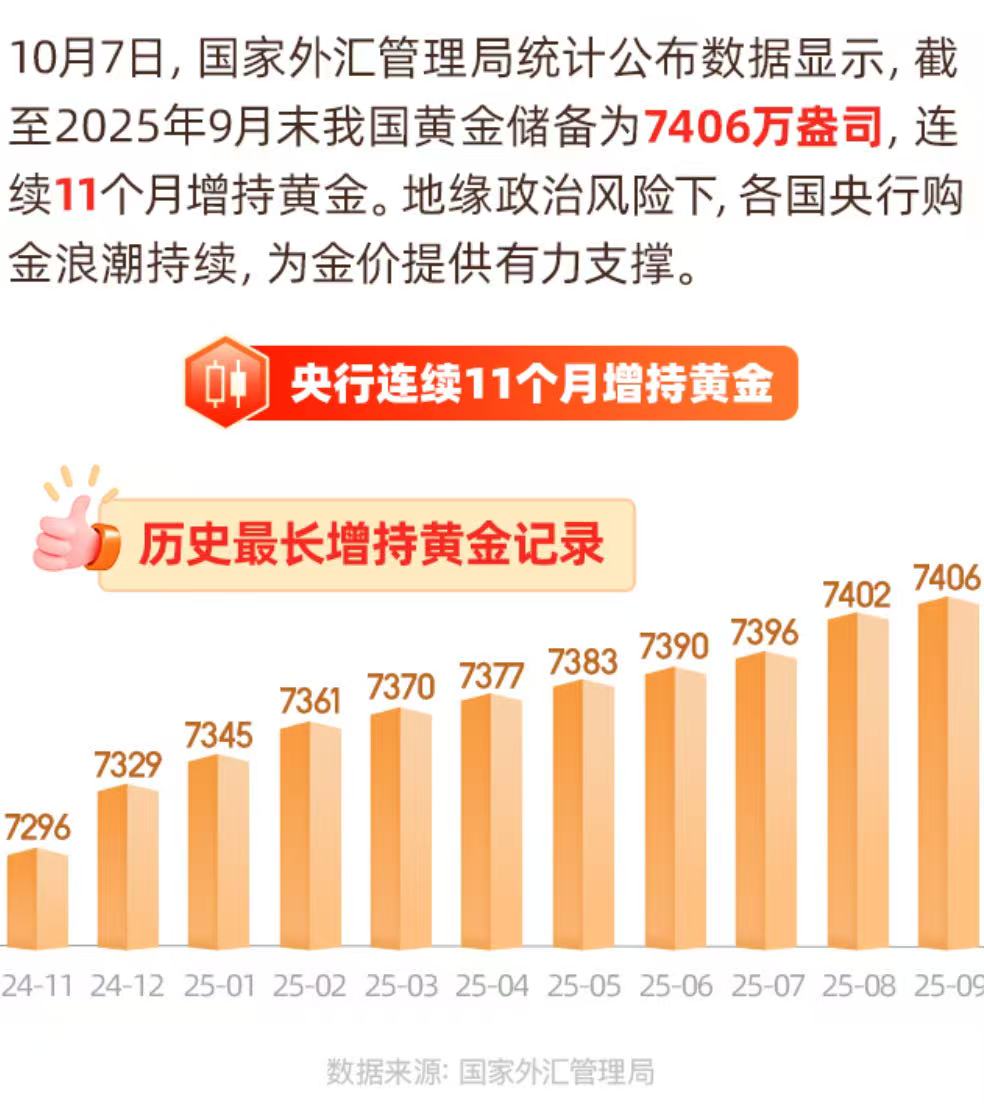中国央行连续11个月增持黄金,9月末储备达7406万盎司
