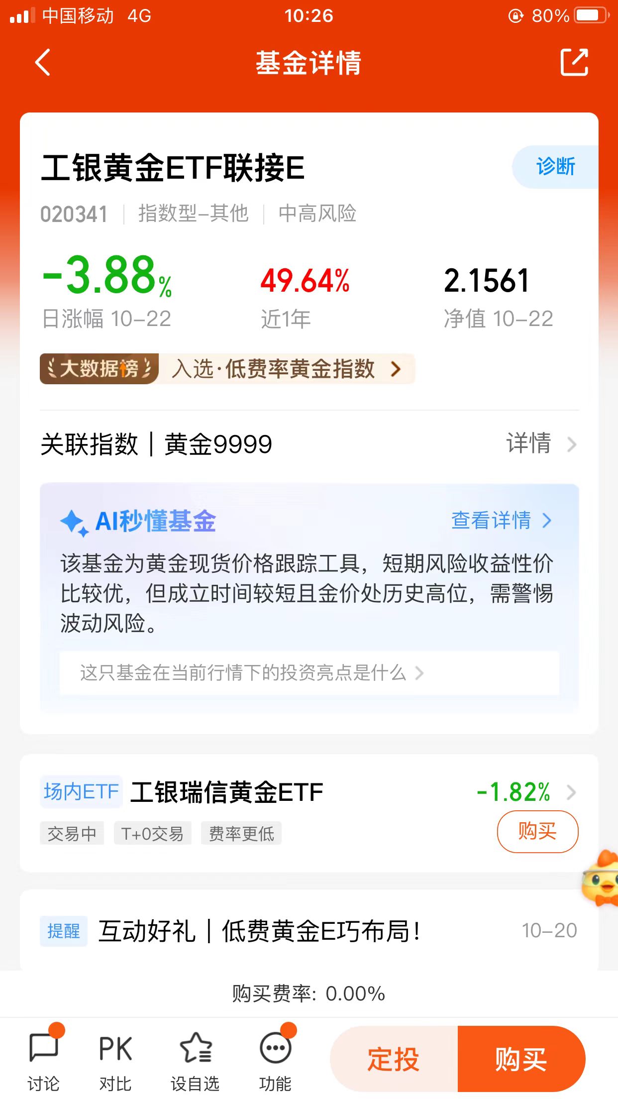 工银黄金ETF联接E基金核心优势分析
