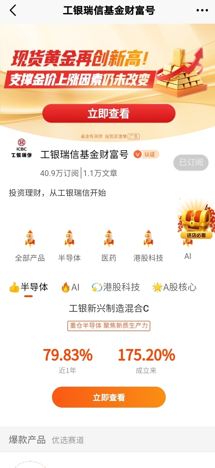 工银黄金ETF联接E紧密跟踪9999黄金现货涨幅,0申购费,持有7天(含)以上免赎回费,且管理费+托管费为同类最低一档,给投资者投金更多灵活选择。