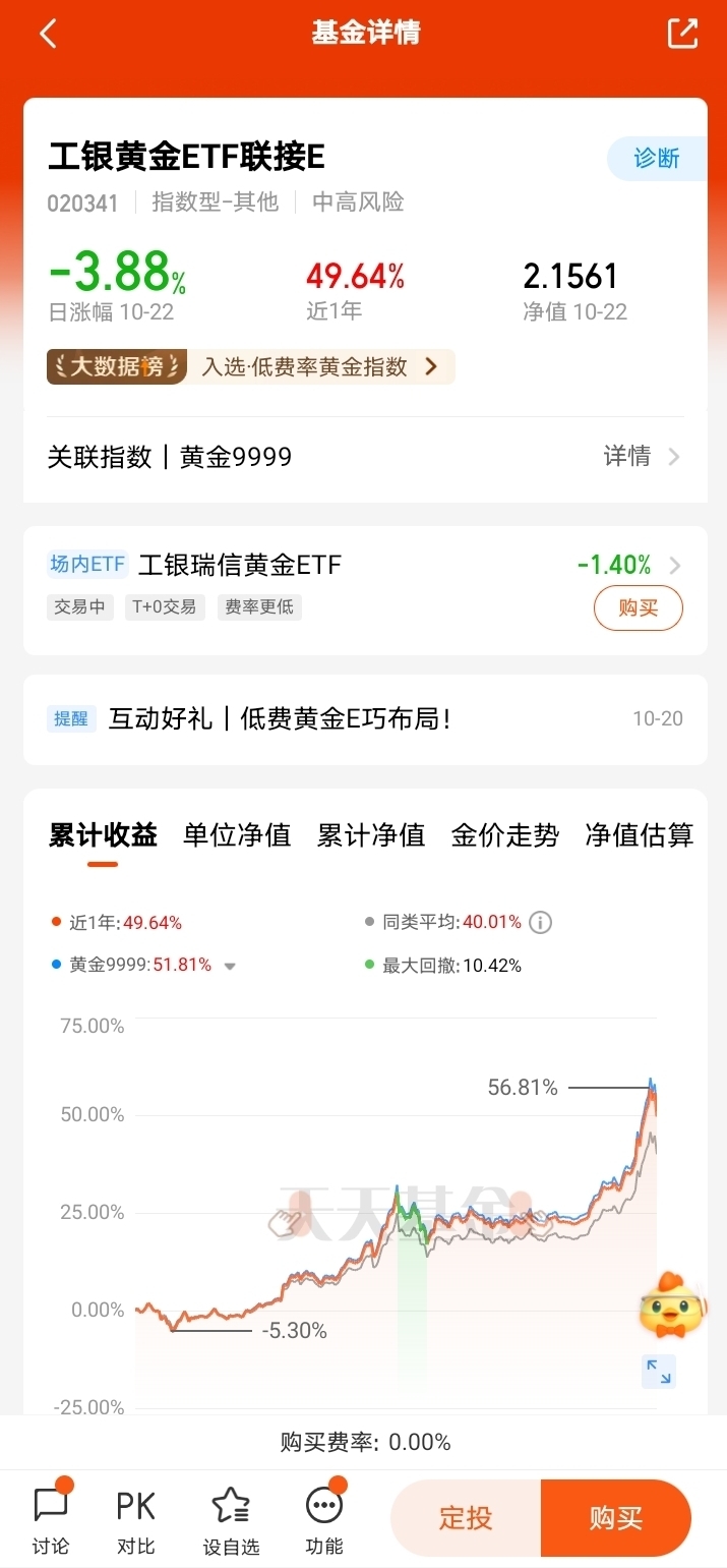 长期投资:对于长期投资者来说,低管理费和托管费可以显著提高投资收益。工银黄金ETF联接E基金的低费率结构使其成为长期投资的优质选择。