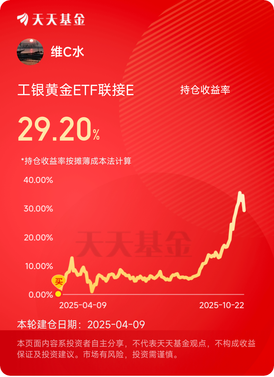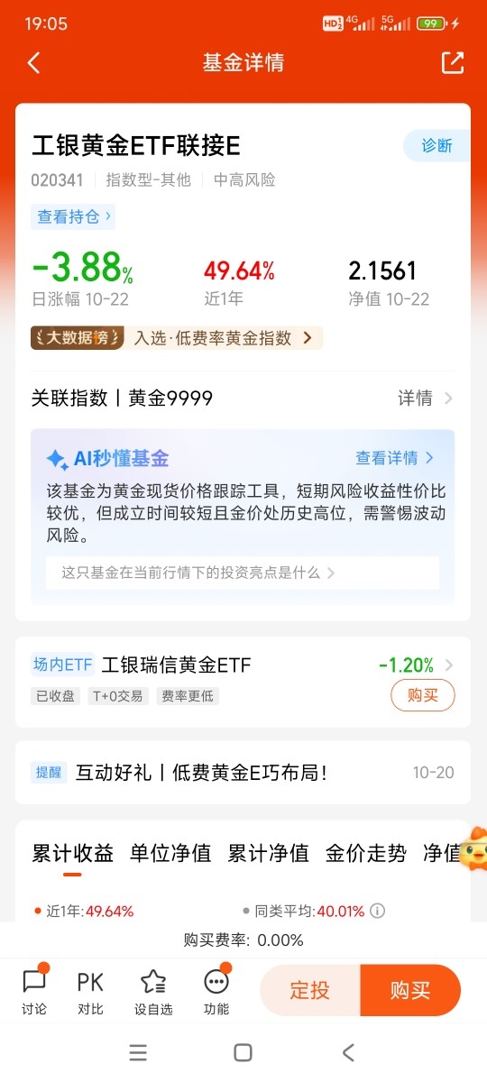 但市场从来都是有人愁有人笑,这边追高者慌得不行,那边冷静的投资者倒觉得机会来了,投资者趁着波动加仓$工银黄金ETF联接E$ ,既不用操心实物存储,流动性还强 。