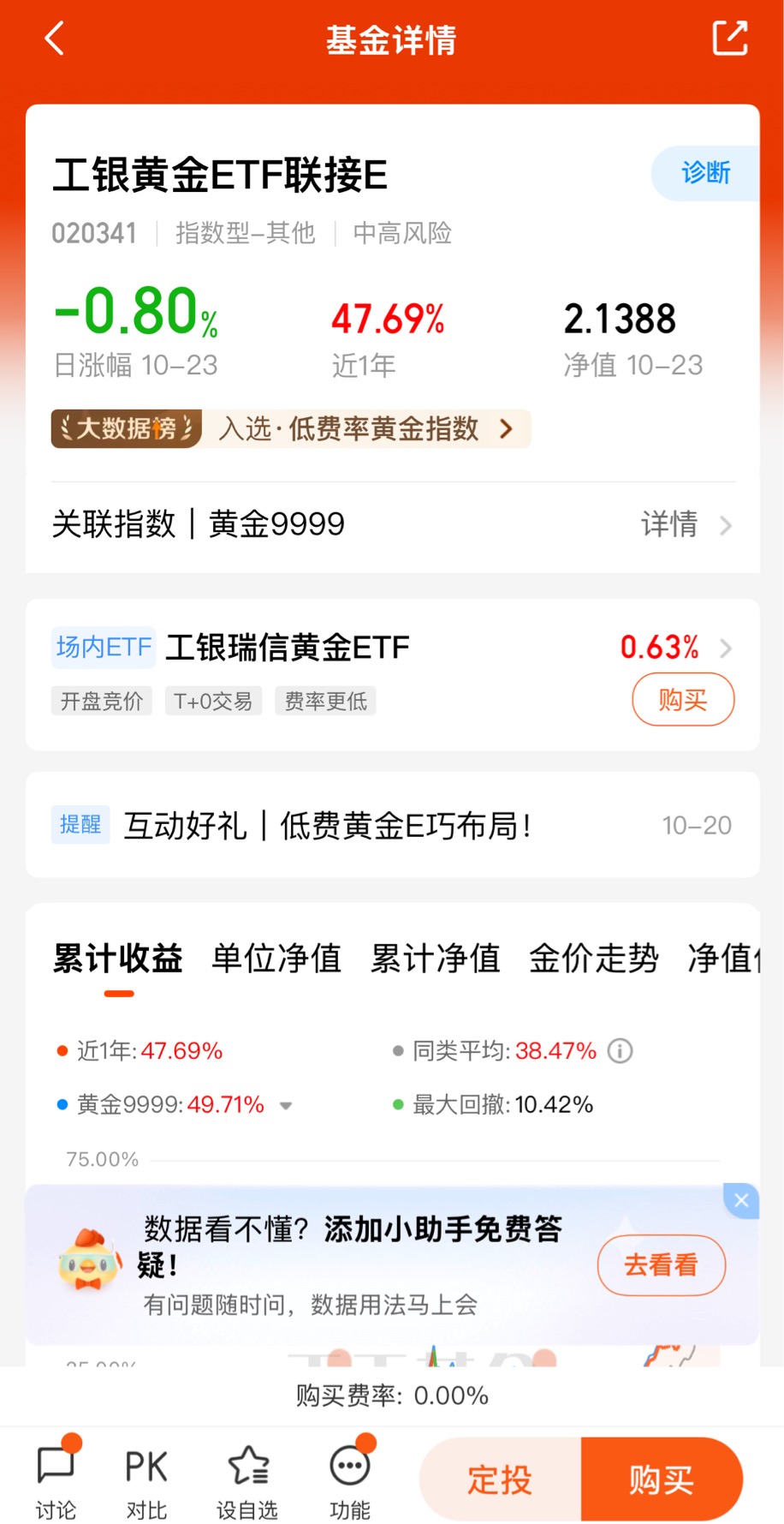 实物黄金交易存在保管成本、变现困难等问题,黄金期货交易则风险较高。在全球货币超发、通胀预期升温的背景下,黄金的长期配置价值得到广泛认可。工银黄金ETF联接E基金作为低成本、易操作的工具,适合作为资产组合中的“稳定器”,抵御不确定性并实现资产保值增值。@工银瑞信基金