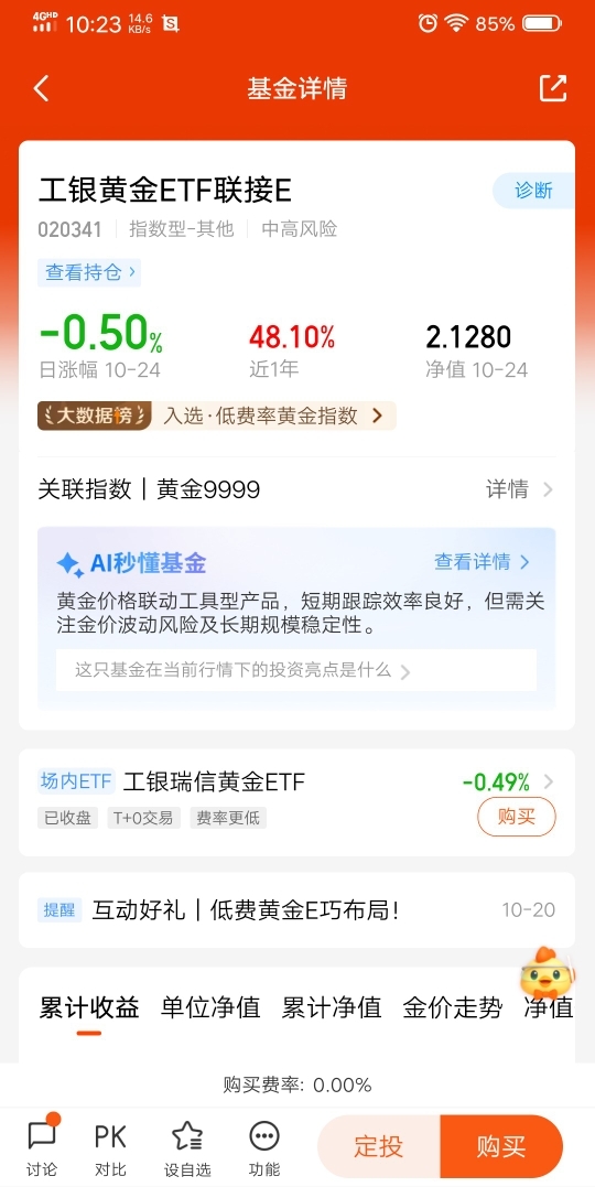 回顾选择$工银黄金ETF联接E$ 的过程,除了产品本身的优势,工银瑞信基金的投研实力也是重要考量因素。作为专业的基金管理人,工银瑞信在资产配置和行业研究方面经验丰富,能更好地把握黄金市场的投资机会。而且这款基金的E份额的综合费率优势让长期持有更划算。$工银黄金ETF联接E$