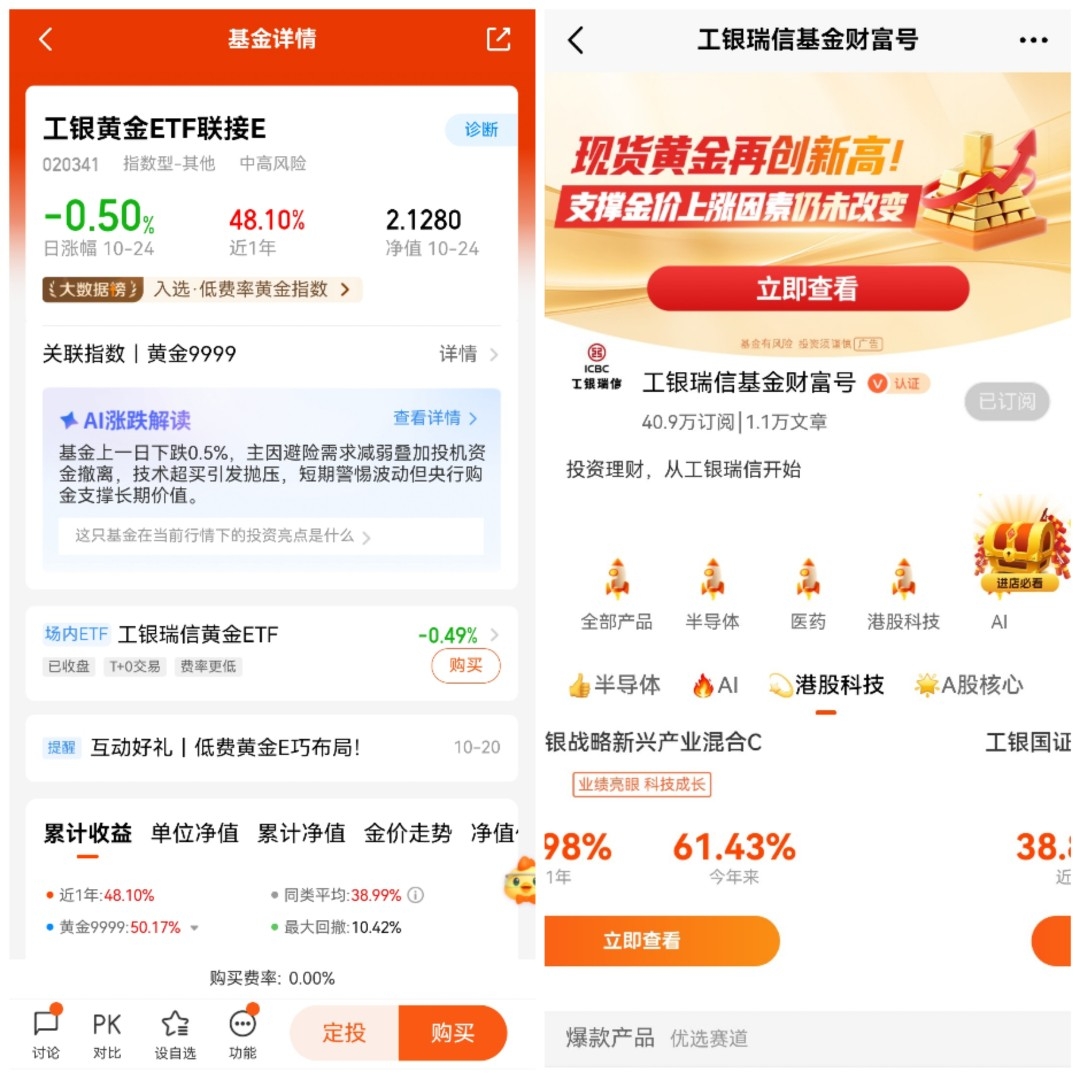 3、市场情绪因素:近期全球最大的黄金ETF出现了大规模减持的情况,如10月23日和24日共减持了11吨左右,这可能引发了部分投资者的恐慌情绪,导致工银黄金ETF联接E的净值出现下跌。