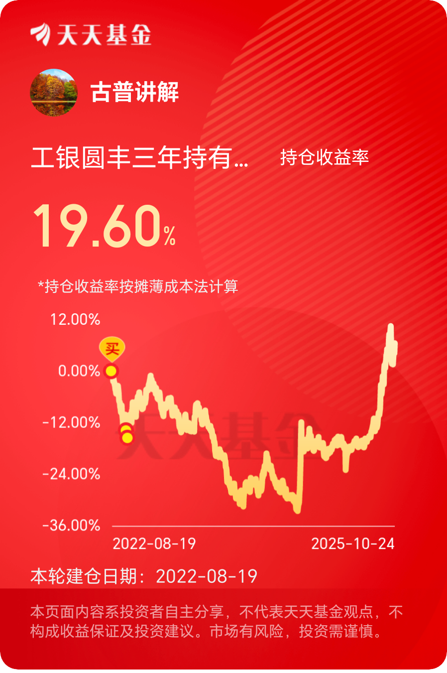 从长期来看,在全球经济增速放缓、货币信用扩张、地缘冲突常态化的大背景下,黄金的价值中枢将持续上移。把握降息周期带来的投资机遇,选择费率优势显著的工银黄金ETF联接E(020341)等优质产品,将黄金科学纳入资产组合,不仅能够对冲市场风险,更能分享货币体系变革与资产价值重估带来的长期收益,为财务目标的实现提供坚实保障。
