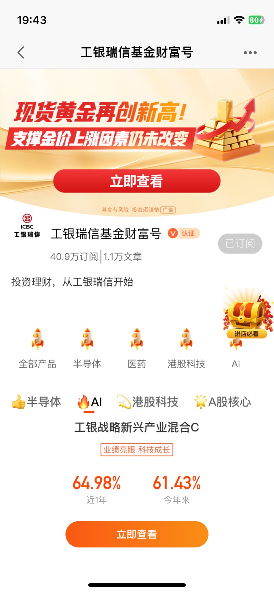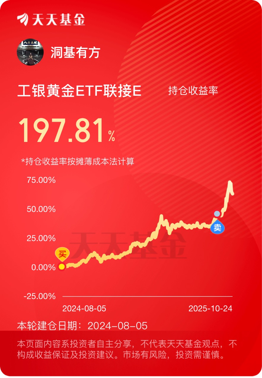 回到投资黄金上面,笔者一直觉得黄金ETF是不错的选择,因为它的持有成本更低,低费率不仅能够增强投资者对于黄金这类相对波动较高资产的容忍度,且有利于放大投资收益,性价比可以说非常高。感兴趣的投资者,不妨考虑工银黄金联接这类低费率黄金ETF产品。@工银瑞信基金