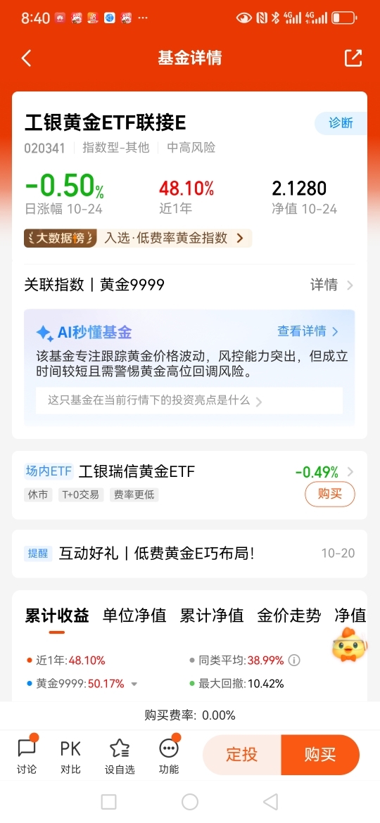 今年以来黄金走势强劲,工银黄金 ETF 联接E这款基金正好为投资者提供了一种便捷、安全、透明的黄金投资方式,而且费率最低,可以节省投资成本。无论是追求资产保值增值的稳健投资者,还是希望在黄金市场中获取超额收益的激进投资者,工银黄金 ETF 联接E都值得一试。让我们一起抓住黄金投资的机遇,借助工银黄金 ETF 联接E的力量,开启财富增值的新篇章吧!@工银瑞信基金