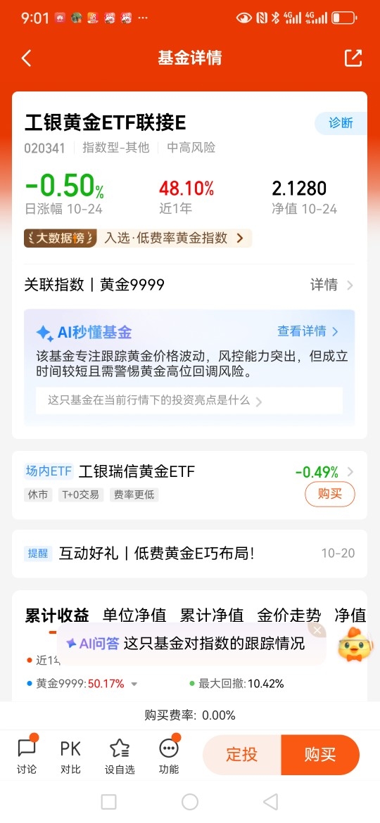 $工银黄金ETF联接E$紧密跟踪黄金走势,跟踪误差小,费率最低,可以积极配置!@工银瑞信基金