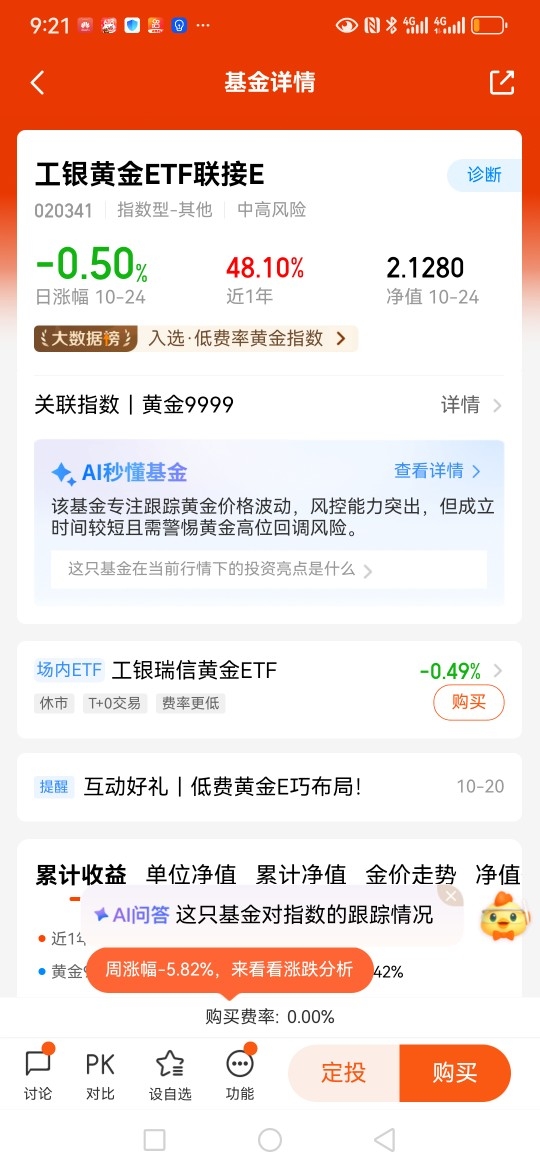 现在可以选择$工银黄金ETF联接E$进行黄金资产配置,这款基金申赎方便,费率最低,可以长期关注!@工银瑞信基金
