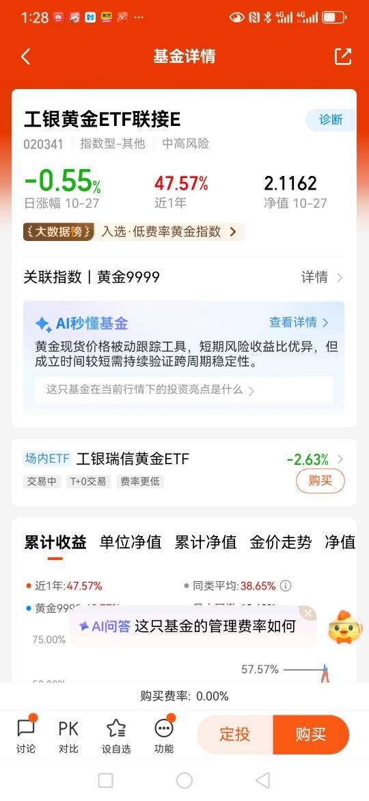 综合以上因素,预计黄金价格在未来一段时间内仍将保持较为强劲的走势。可以借$工银黄金ETF联接E$配置一些黄金资产,既丰富了自己的资产配置,又能获得不错的收益,而且费率还非常低哦!@工银瑞信基金
