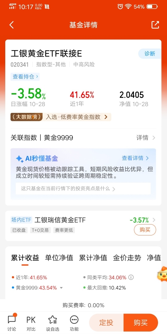 $工银黄金ETF联接E$ 就很适合用来丰富我的投资组合。黄金和股票、债券的相关性比较低,我通过工银黄金ETF联接E深度参与黄金投资,深刻体会到这款产品的优势。0申购费、持有7天以上免赎回费,大大降低了投资成本;管理费加托管费合计处于同类最低一档,长期持有优势明显;同时,紧密跟踪黄金现货价格,能让投资者精准把握市场机会。$工银黄金ETF联接E$