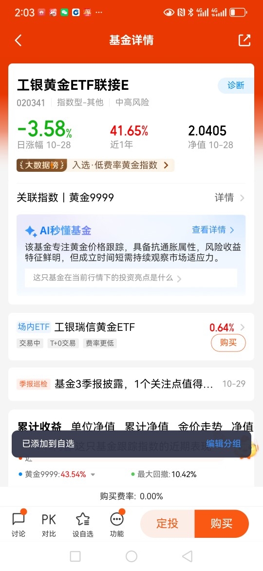 所以,现在黄金接下来涨跌是不是一目了然了呢?有了结论,就赶快上车吧,$工银黄金ETF联接E$是非常不错的选择,低费率,节省不少成本,赶快去试试吧。