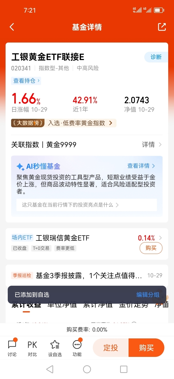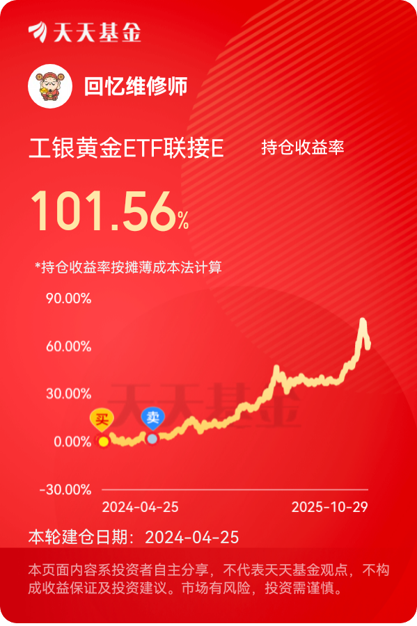综上所述,我提前布局了工银黄金ETF联接E(020341),因为赵栩基金经理的投资经验相当丰富。@工银瑞信基金