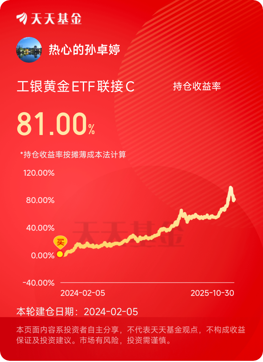 家人们谁懂啊!刚毕业一年,月薪扣完五险一金6000+,抠抠搜搜攒下2万块,看着活期那点利息,再想想通胀,真的会焦虑到失眠 之前跟风买过热门基金,亏了1500块后彻底怂了,直到半年前开始研究黄金,入手了工银黄金ETF联接E,才慢慢摸清理财的门道——原来黄金的核心不是“赚钱”,而是“守钱”,而费率,居然是新手最容易忽略的隐形收益!
