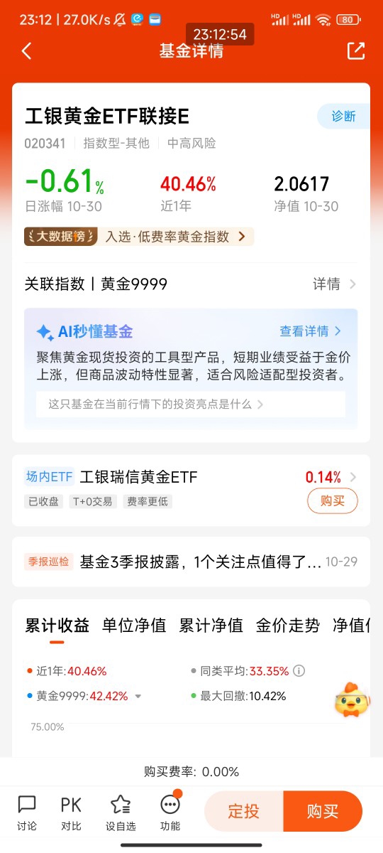 #10月你看好哪些投资赛道?# #低费工银黄金E#对于黄金来说,最疯狂的时刻可能已经过去。再想要像之前那种两周涨15个点的行情,接下来可能很难等到了。