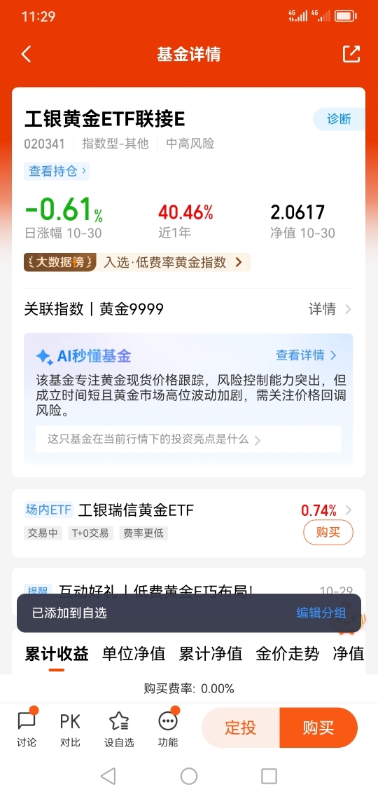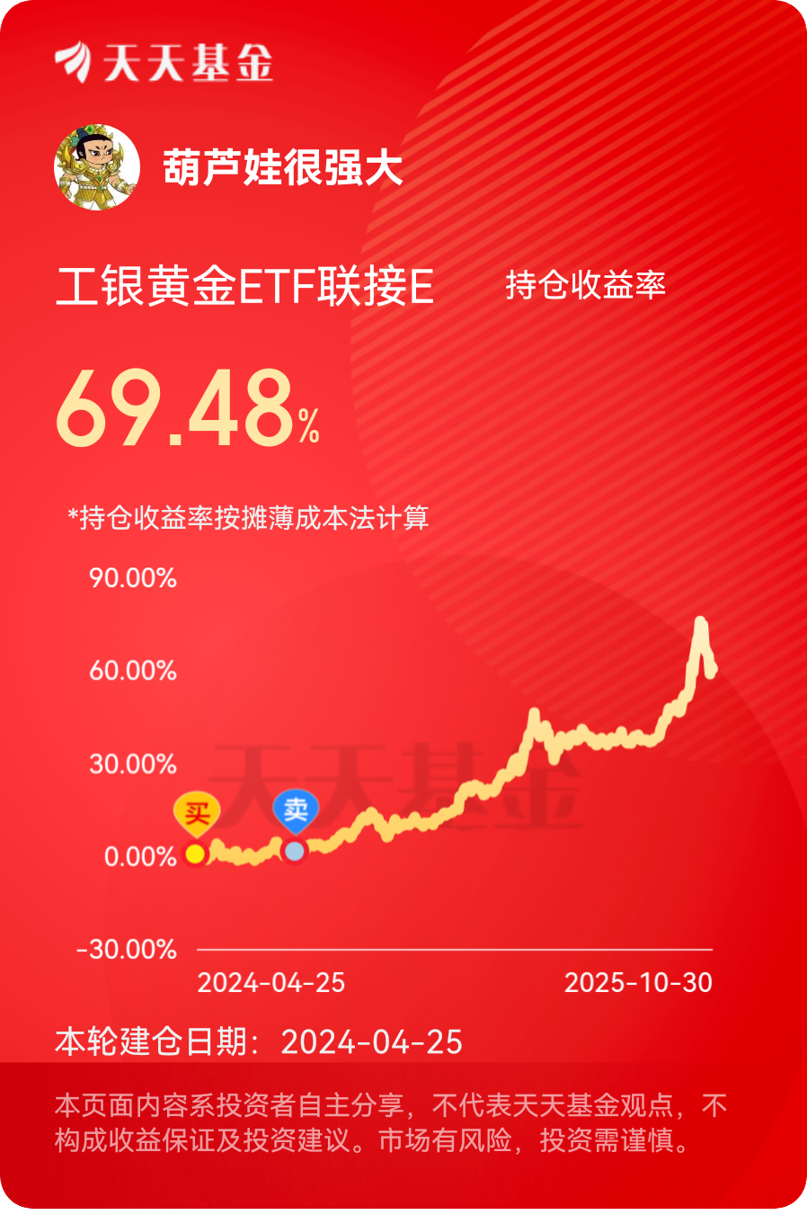 再经过以上认真的思考之后,我持有的是工银黄金ETF联接E(020341),因为它的长期历史业绩有目共睹。@工银瑞信基金