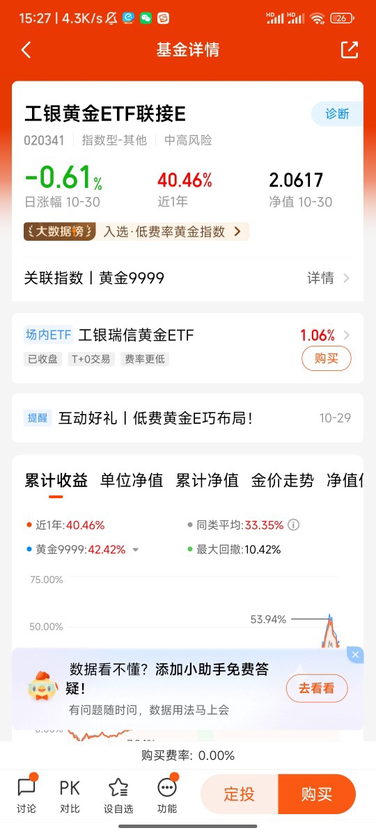 综上所述,我提前布局了工银黄金ETF联接E(020341),因为赵栩基金经理的投资经验相当丰富。@工银瑞信基金
