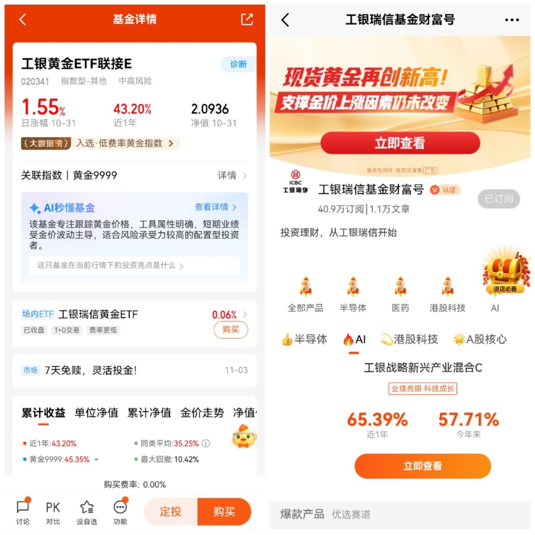 #10月你看好哪些投资赛道?# 留言第20天,工银黄金ETF联接E的费率优势十分突出,其管理费0.15%与托管费0.05%的组合处于全市场同类产品最低水平,还实行0申购费政策,且持有满7天就能免除赎回费,这种低费率设计大幅降低了投资者的交易和持有成本,长期持有下来能为投资者节省不少费用,助力提升长期收益 。它的跟踪精准度很高,会将不低于90%的资产投资于工银瑞信黄金ETF,以此间接紧密跟踪上海黄金交易所AU99.99现货价格走势,近一年跟踪误差仅0.12%,远低于同类平均的0.25%,能让投资者精准分享黄金价格上涨带来的收益 。该基金的投资门槛特别亲民,仅需1元就能参与投资,彻底打破了传统黄金投资的高资金门槛限制,让普通投资者即便用少量资金也能轻松参与到黄金投资市场中 。它的交易模式灵活便捷,支持场内与场外双渠道交易,场外可通过银行、支付宝等常见平台申购赎回,场内能通过证券账户交易,且适合短期波段操作与长期定投等多种投资策略,同时其流动性充裕,日均成交额超2亿元,赎回后T+2即可到账,能满足投资者不同的交易需求 。该基金的管理团队实力强劲,基金经理赵栩拥有近14年指数管理经验,在管规模超520亿元,他会通过动态调整ETF申购比例与现金头寸控制风险、提升收益,比如2024年金价波动中就为基金实现了1.5%的超额收益,而且基金近一年夏普比率3.53远超同类水平,体现出良好的风险调整后收益能力 。此外,作为挂钩黄金的基金,它还具备优秀的资产配置价值,黄金本身的避险、抗通胀属性,能让这款基金在经济不确定性增加、货币贬值等场景下保持价值稳定,将其纳入投资组合,可分散股债等资产的投资风险,成为投资组合的“减震器” 。