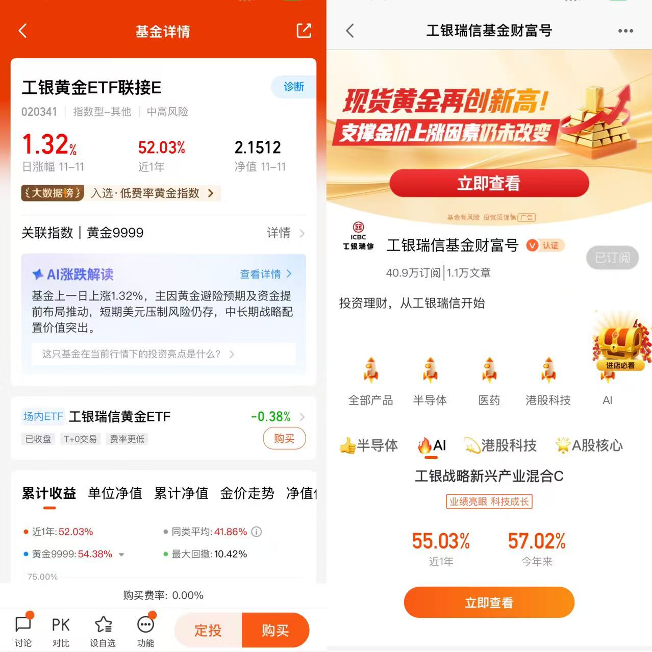 实物黄金虽然保值功能最强,但购买和持有成本较高,且流动性较差。纸黄金虽然门槛低、交易方便,但存在点差成本和信用风险,特别是做空交易时的强制平仓风险 。黄金期货则因高杠杆特性,风险较大,更适合专业投资者。相比之下,黄金ETF基金(如工银黄金ETF联接E)在成本、流动性和交易便利性方面具有明显优势,且无需承担实物保管风险和信用风险。