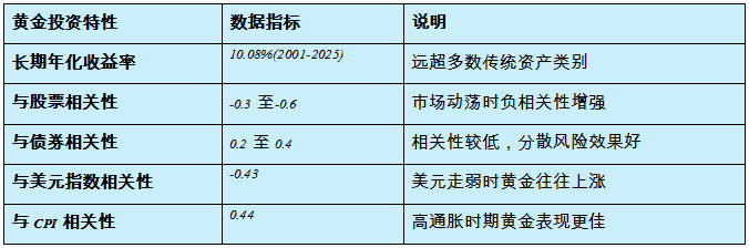 从对冲通胀角度看,黄金是抵御通胀的有效工具。自1971年以来,黄金涨幅超过CPI,尤其在高通胀时期表现更为出色(通胀2%-5%时年均上涨8%)。2025年,尽管全球通胀有所放缓,但仍有三分之二的国家通胀高于疫情前水平,这使得黄金的抗通胀属性持续受到关注。世界黄金协会研究显示,在当前经济环境下,投资组合中配置10%的黄金可将夏普比率提升15%-20%,显著优化风险收益比。
