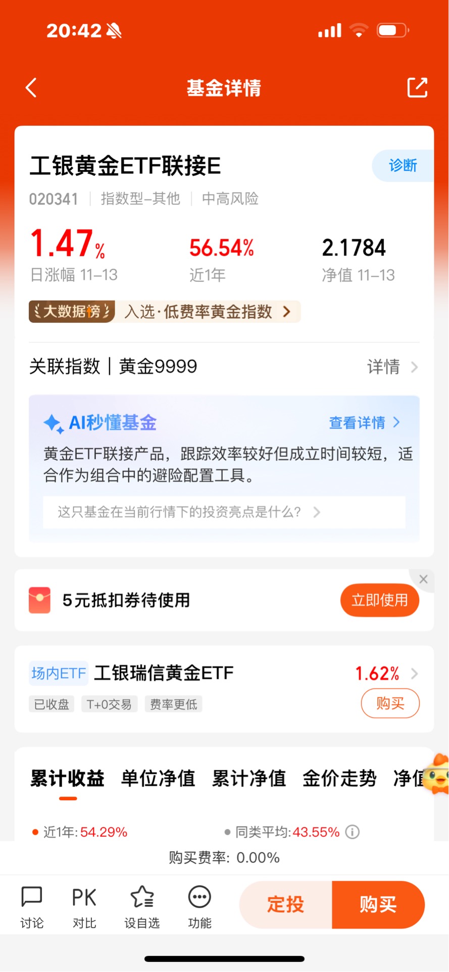 #10月你看好哪些投资赛道?#打卡第九天,$工银黄金ETF联接E$