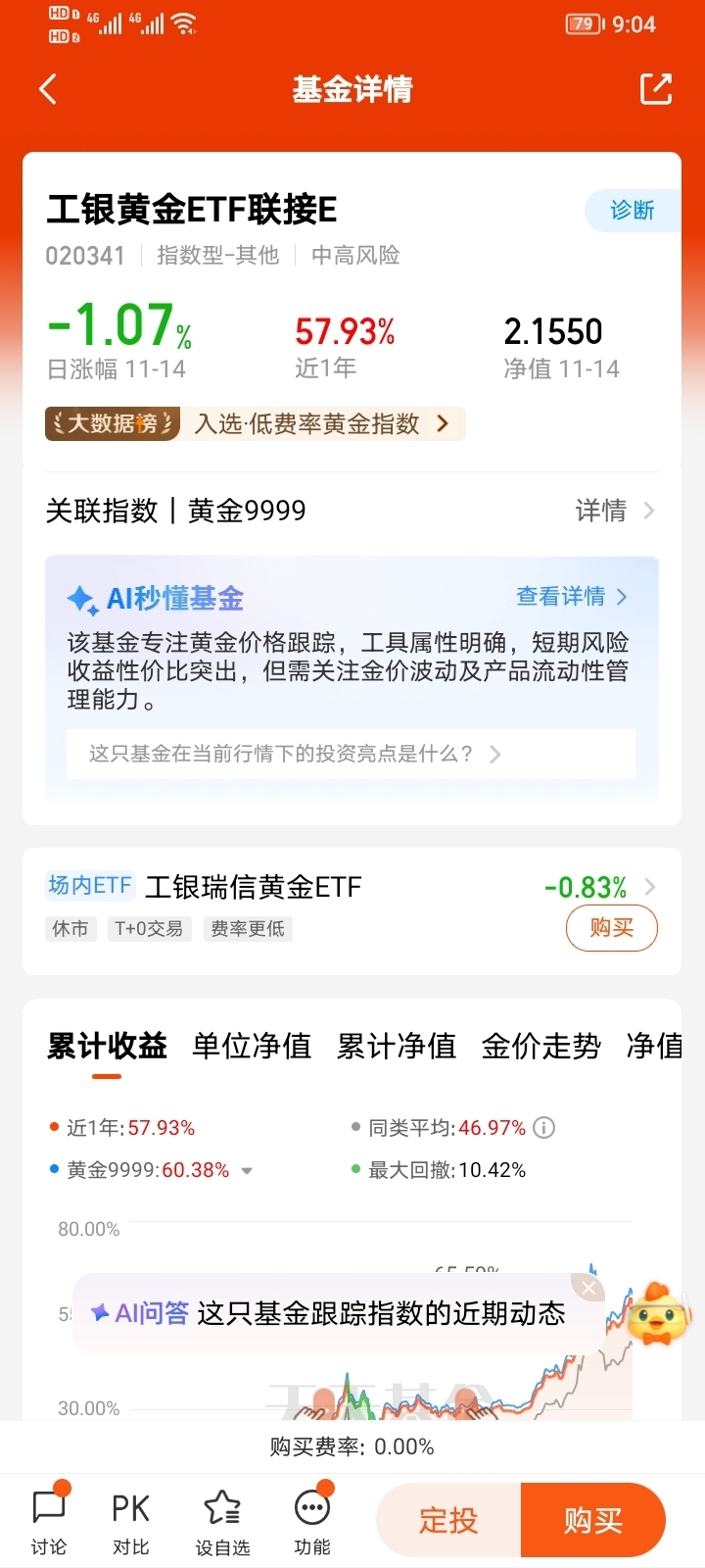 打卡第1天,10月投资依然关注黄金投资,选择$工银黄金ETF联接E$应对市场震荡