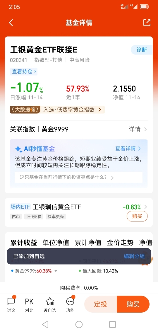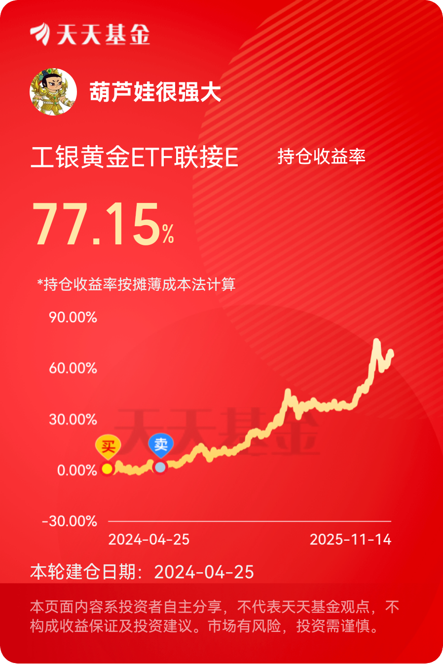 再经过以上认真的思考之后,我持有的是工银黄金ETF联接E(020341),因为它给我带来了相当不错的投资体验。@工银瑞信基金